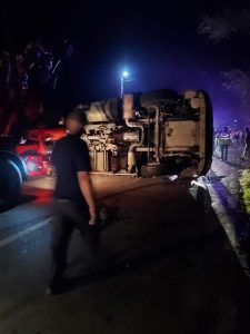 Un camion încărcat cu lemne s-a răsturnat pe DN 67D, în localitatea Tismana. Câteva zeci de minute drumul a fost blocat de buștenii care s-au împrăștiat pe asfalt.