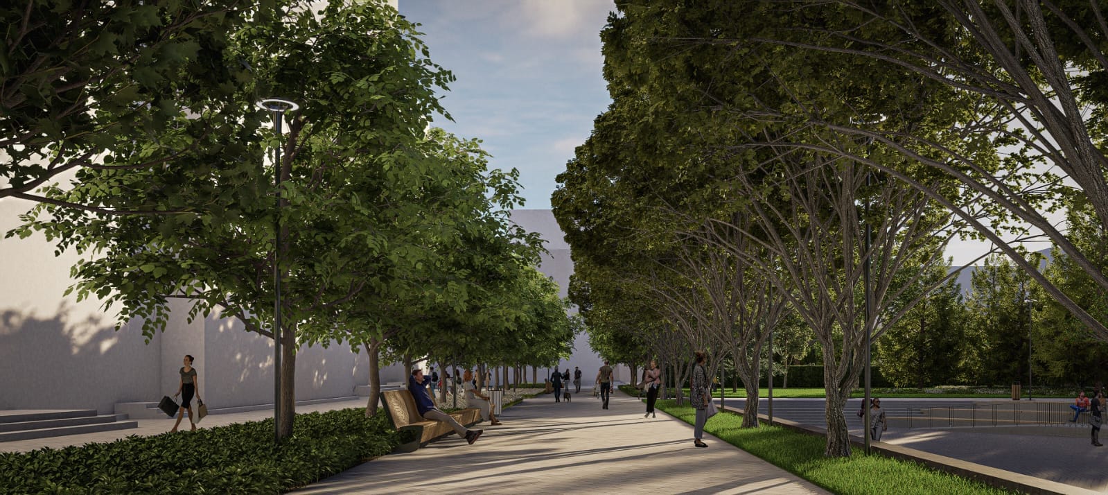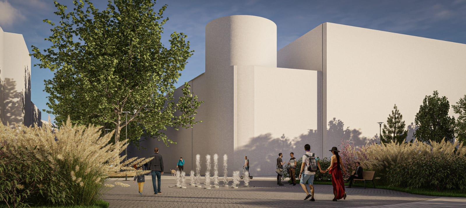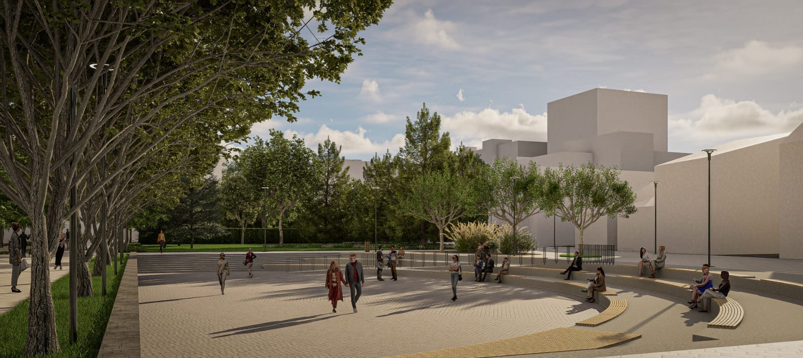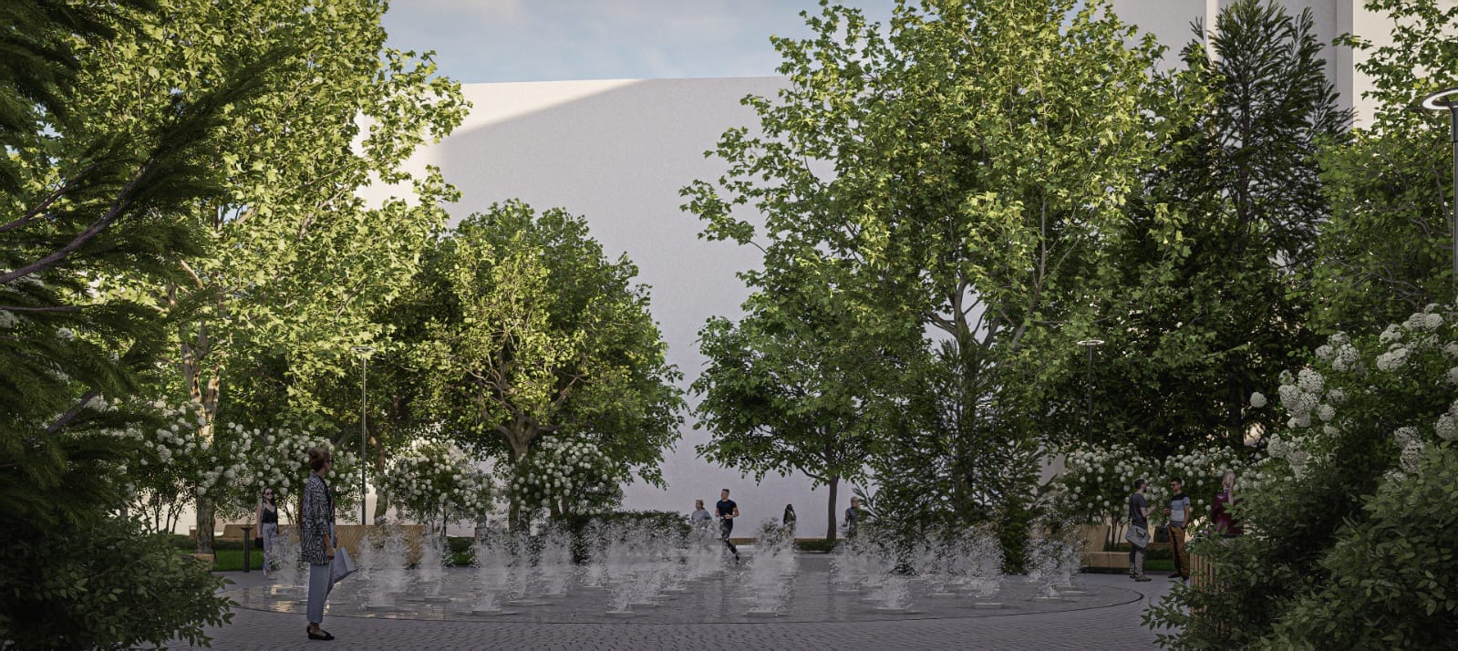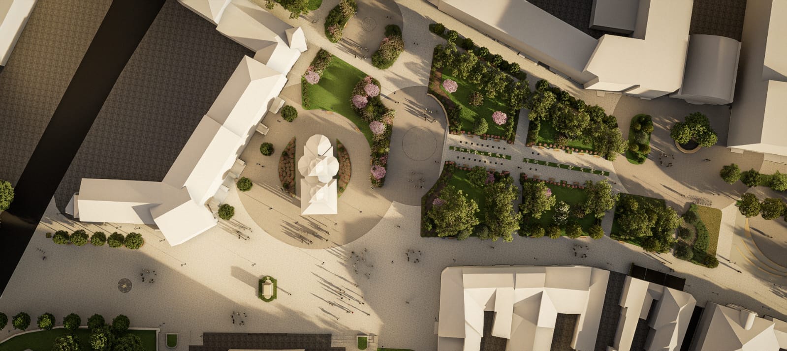 Betonul amprentat va acționa ca o bază, peste care se va aplica un adeziv ce va fixa piatra naturală care va defini centrul orașului. Reconfigurăm amfiteatrul, iar fântânile arteziene vor fi modificate complet, propunerea noastră fiind deschiderea spațiului, un aspect cât mai natural și zone verzi foarte bine îngrijite.